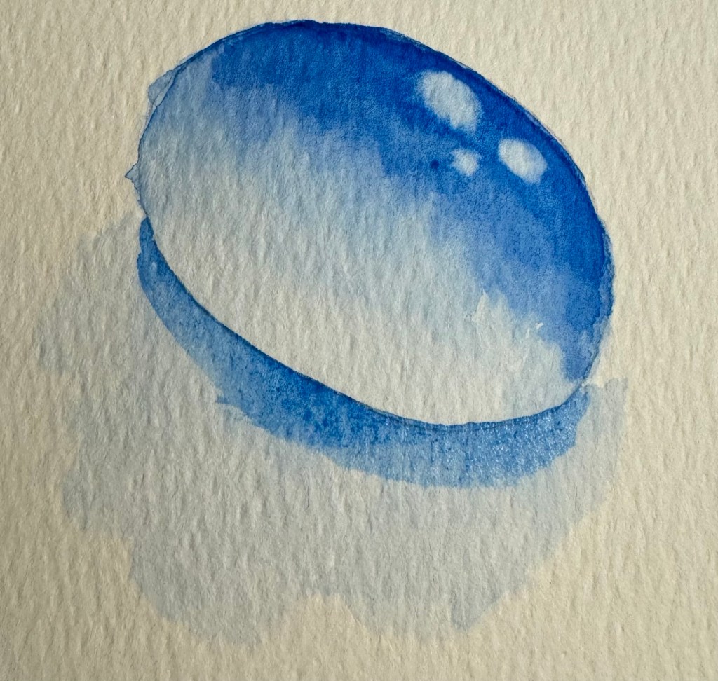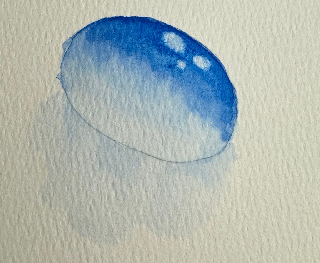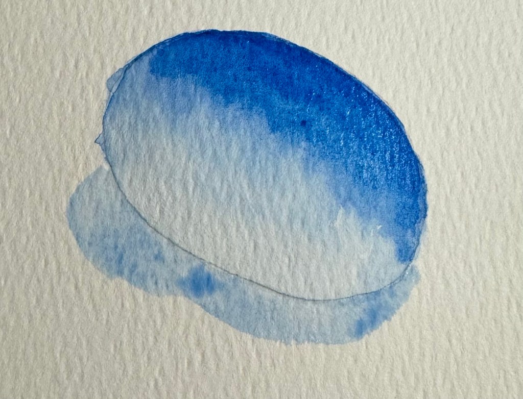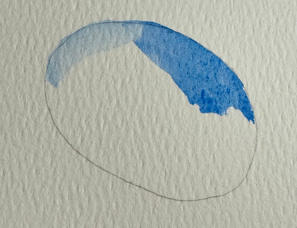 I painted along the outline, then used a clean wet brush to spread out the dark blue.